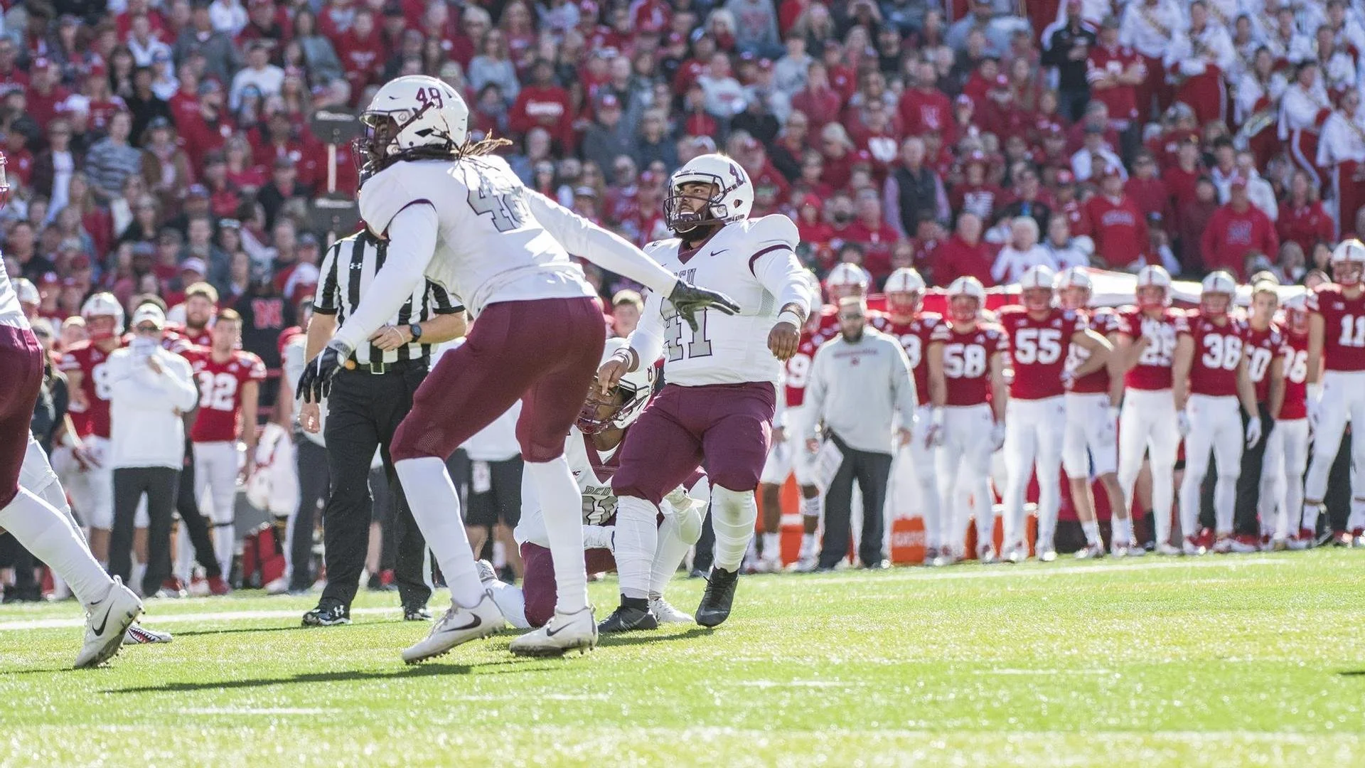 Bethune-Cookman’s Uriel Hernandez captured the attention of Nebraska fans and social media with his enthusiastic performance and stature.